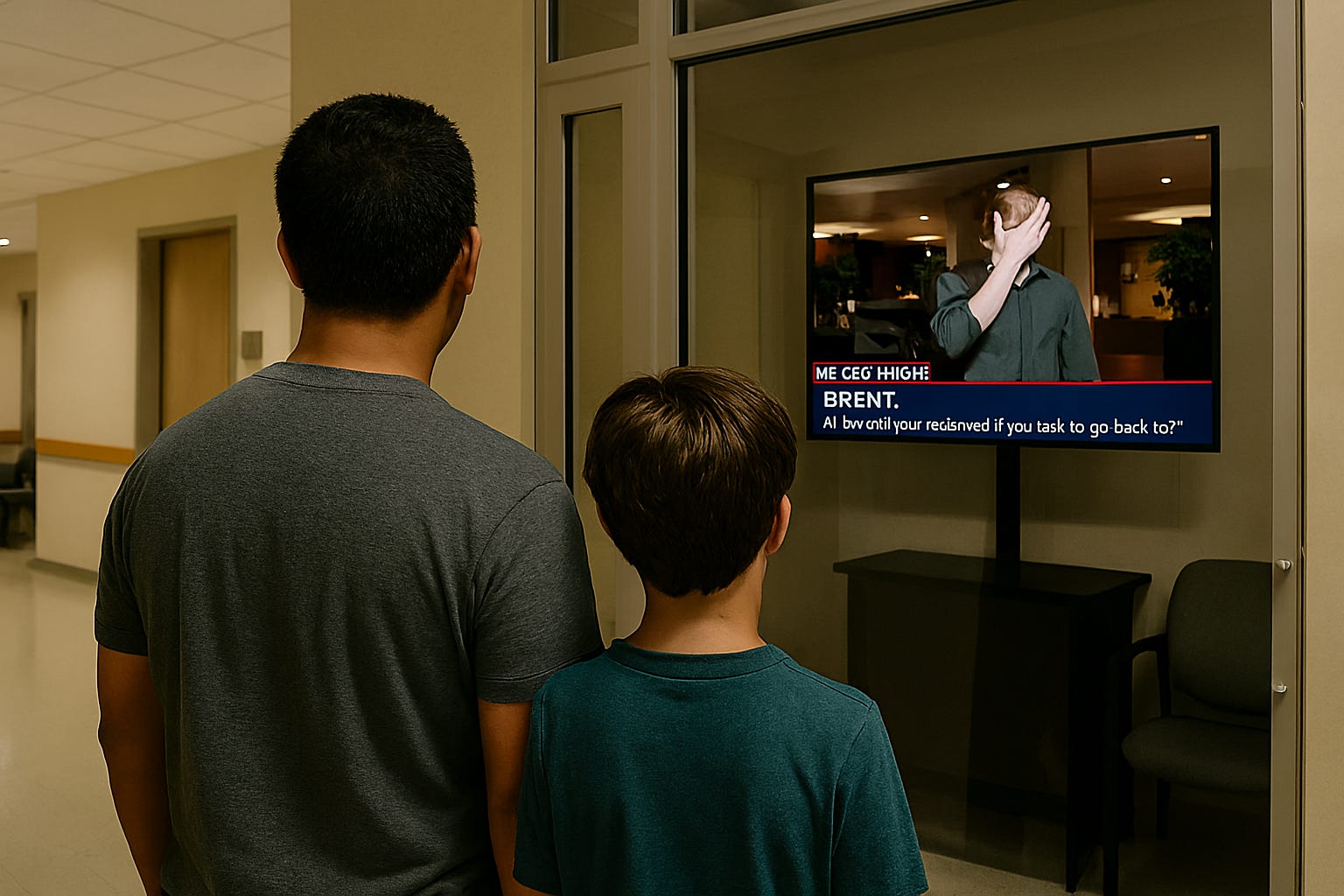 As we made our way through the lobby toward a separate section of the hospital, we passed several smaller glass-enclosed offices, each with a large TV screen mounted high on the far wall. I noticed they were all tuned to the same news channel. When we reached the last office, I suddenly stopped. Nathan didn’t notice at first and kept walking, but after a few feet he realized I wasn’t beside him. He turned back and found me standing still, staring at a TV through the glass wall.